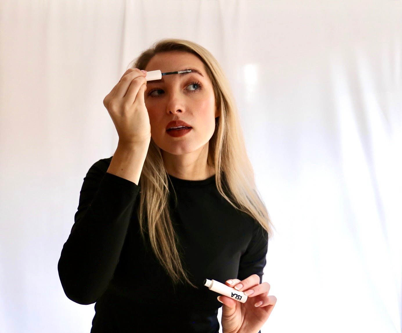 Finish by gently pressing with the brush to lock your brows in place. Isla’s brow setter ensures a flawless, long-lasting hold.